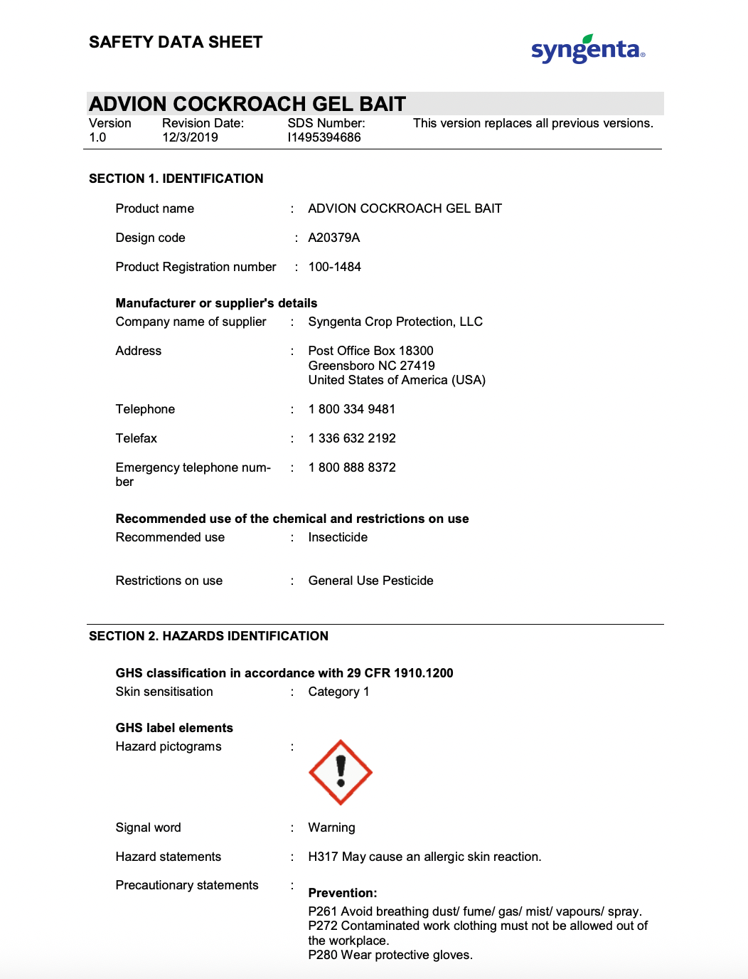 As industry experts in DIY pest control, we're here to answer any questions you might have about the Advion Cockroach Gel Bait and other pest control products in stock. We also provide simple-to-follow guides on identifying pests in your home, picking the right products, and using them to achieve the best results. Contact us to learn more about Syngenta Advion roach killer.