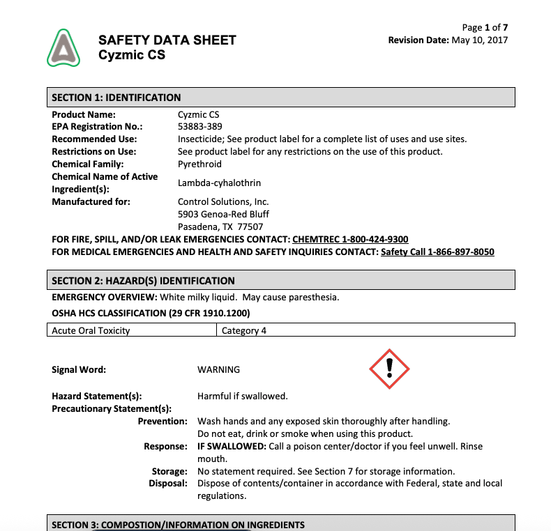 Cyzmic CS insecticide is the go-to for pest control experts everywhere. This powerful insecticide uses tiny capsules to release its active ingredient for fast results after spraying. Cyzmic works great against ants, cockroaches, mosquitoes, and a variety of other pests.