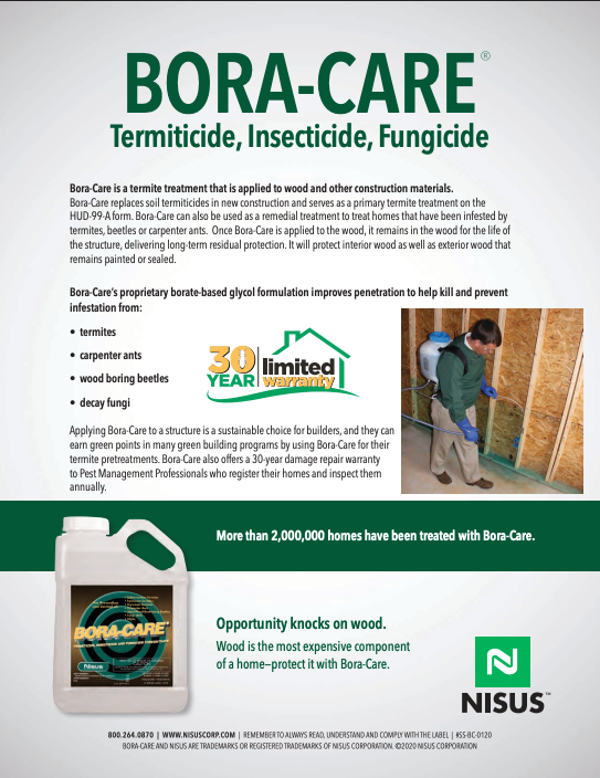 Bora-Care is a perfect solution for soil treatments in new construction and serves as a primary termite treatment on the HUD-99-A form. It also kills and prevents termites and wood-boring beetles in existing construction. Buy termiticides at DIY Pest Warehouse and enjoy peace of mind knowing your home is protected against these pests.