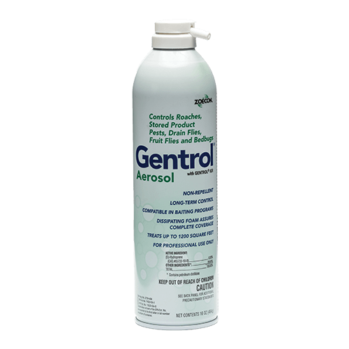 Gentrol IGR Aerosol is an insect growth regulator that can be used to target pests in hard to reach areas. The foam that comes out will dissipate so when applying, use it in a sweeping motion. This stunts the growth of cockroaches and bedbugs. Can be used for drain flies, fruit flies and pantry pests.