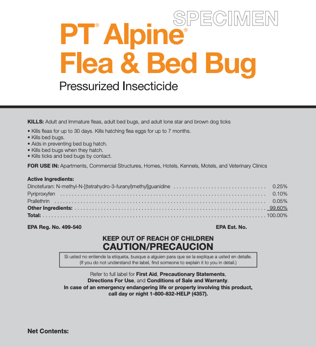 PT Alpine flea and bed bug is a long-lasting spray that is perfect for use on furniture, bedding, carpets, and more. Apply it anywhere bed bugs and fleas may harbor, including seams of mattresses and tufts, or wherever they hide or travel. You can use this aerosol spray to treat under, behind, and inside any furniture, wall coverings, open carpeted areas, room walls and floors, headboards, and box springs.